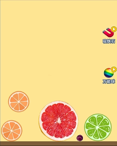 在游戏里,要是挑战失败,玩家能通过观看30秒广告的方式,获得继续挑战的机会,而且复活次数没有上限。同时,大家在游戏过程中,还能利用屏幕右侧的道具来降低游戏难度。比如磁铁石这个道具,它能直接把指定目标聚集到一块儿,当后期合成出两个高阶水果,却被卡在中间无法移动时,就可以派上用场。