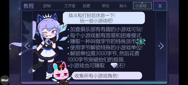 4、可爱的二次元角色正盼着你来为它精心装扮,游戏里备有各式各样不同风格的衣服,任你自由组合搭配。