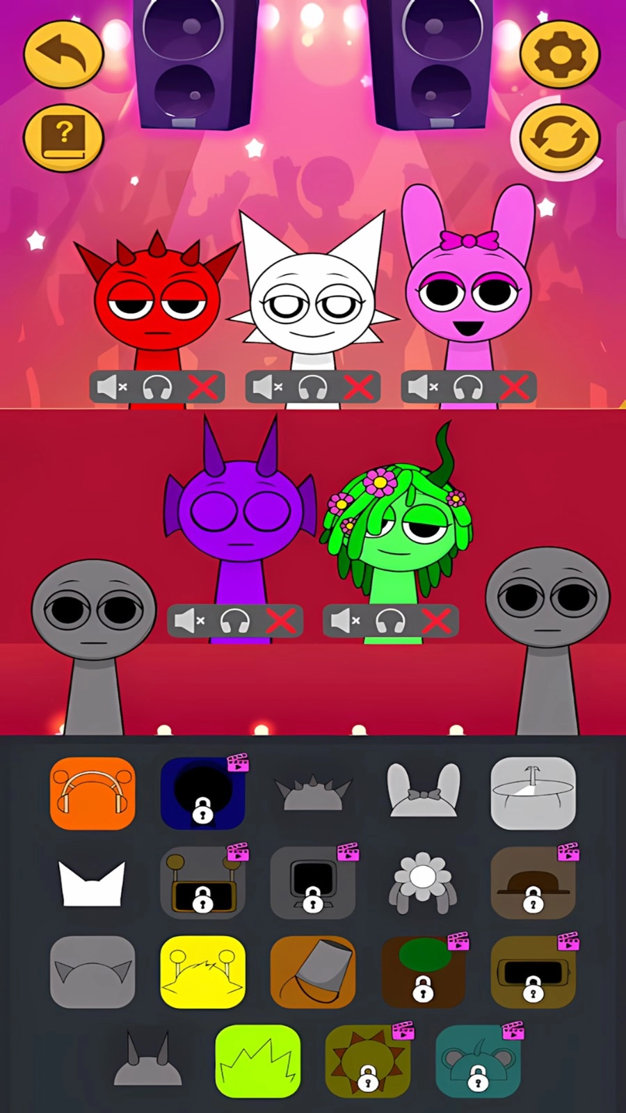 4、轻点每个角色下方的音效按钮,就能实时对乐器配置进行调整,通过把不同音色组合起来,创作出个性化的音乐片段。