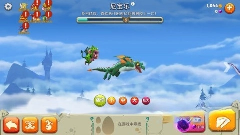 2、游戏初始,玩家仅拥有一只小龙,需在天空中猎食以维持生存并实现成长。若要解锁其他龙,就需使用金币购买,使小龙成长至相应长度。