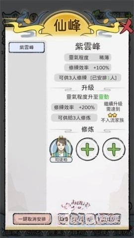 4、通过点击仙峰,安排角色前往不同地点进行修炼。