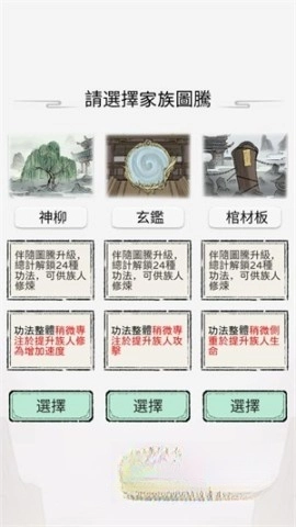 2. 创建角色之后,您需要挑选家族图腾,每个图腾对应的修炼功法都有所差异。