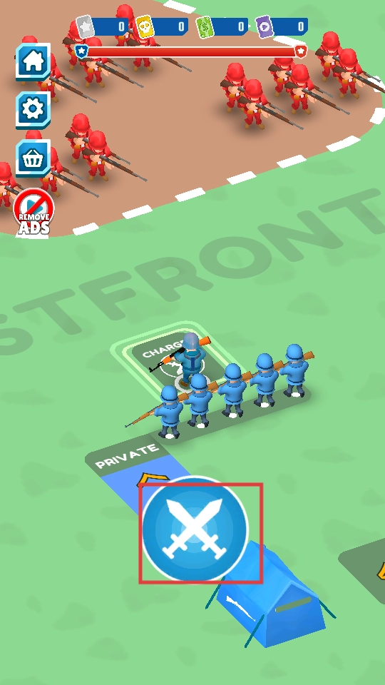 4、完成营地部署后,点击蓝色交叉剑图标,指挥部队朝着敌方展开进攻。