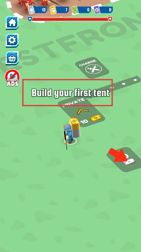 2、消耗资源,依据提示建造首个帐篷【Buildyourfirsttent】,搭建营地设施。