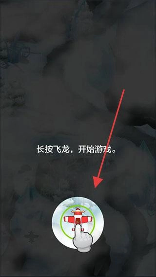 进入游戏的初始界面后,长按那个形似飞机的“飞龙”图标即可开启游戏进程。游戏背景设定在弥漫着雾气的场景中,同时会有操作指引提示,帮助玩家顺利进入飞行关卡挑战环节。