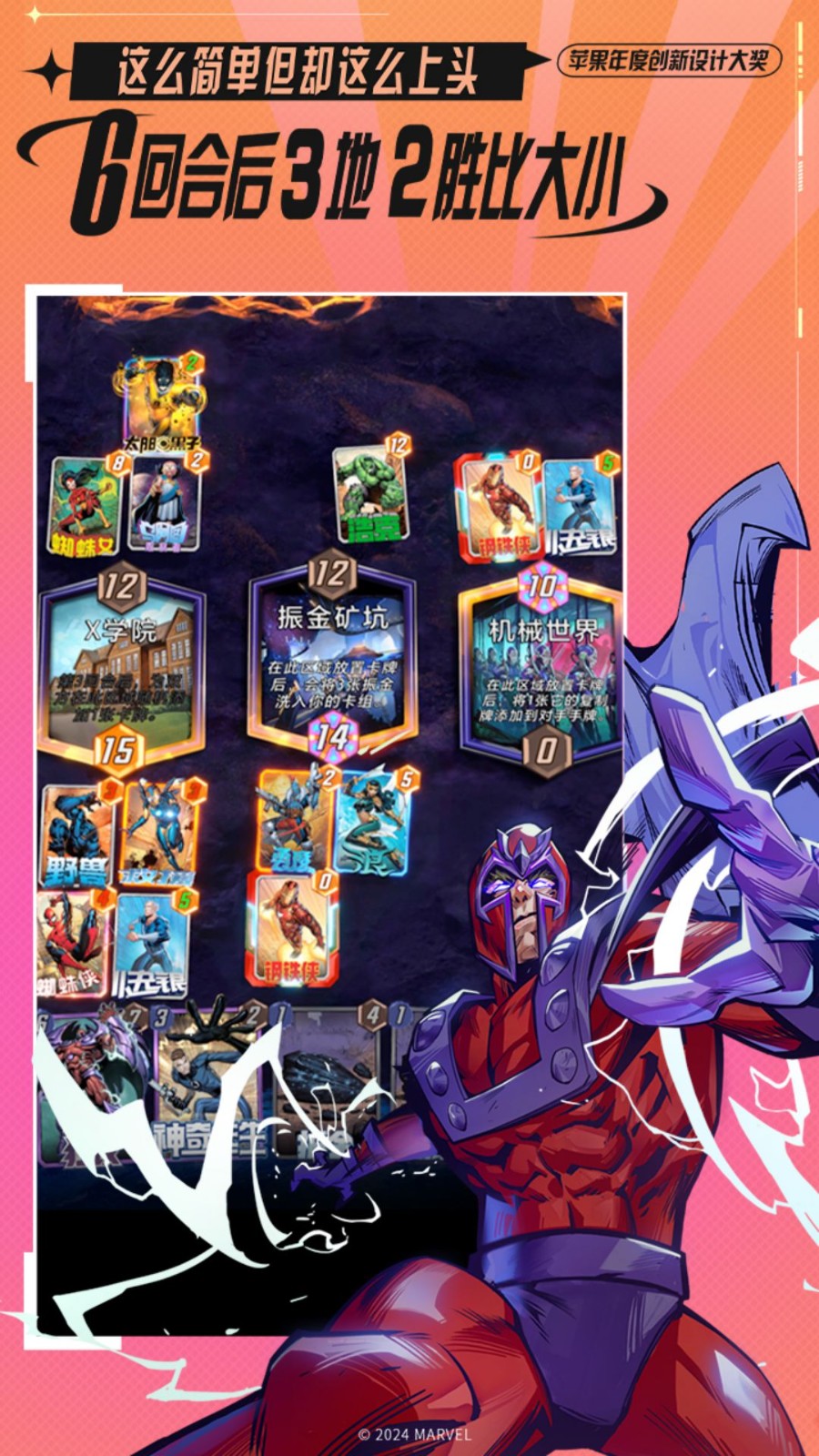 《漫威终极逆转》由网易游戏独家代理并发行,获得漫威IP正版授权。玩家可收集各类漫威角色组成卡组,每套卡组固定包含12张卡牌。对战时双方每回合最多放置4张卡牌,初始手牌为3张,每回合可抽取1张,双方轮流进行出牌操作。不同卡牌具备独特的效果与数值设定,玩家需合理规划每张卡牌的放置时机,以此触发终极逆转机制,实现战力数值的翻倍增长。