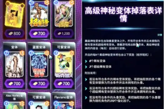 稀有变体和超级稀有变体能够在商店每日刷新时进行购买。商店里还出售定价800金块的高级神秘变体,大家千万不要购买!!!这里再次强调一下,这款游戏不存在随机机制,所有看起来像是随机的内容实际上都是固定的!高级神秘变体是以9个为一组的,每组里一定只有6个稀有变体和3个超级稀有变体,所以别想着去当赌徒,你永远都不可能连续开出好几张超级稀有变体。至于终极变体,它在代币商店每8小时会轮换一次。目前终极变体没有特效(特效还只是设计师承诺的内容),除非你特别喜欢,否则不建议购买,毕竟5000代币的价格实在是太高了。需要说明的是,要是你通过礼包等方式获得了还没拥有的卡牌的变体,那么你是可以使用这张卡牌的,但在之后开箱的时候还是会开出该卡牌的本体。