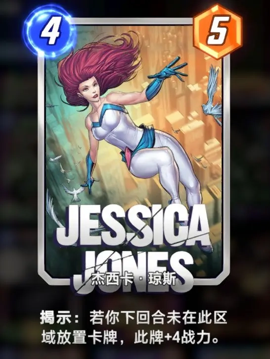 比如作为新手友好角色的杰西卡琼斯,她的效果机制是:若下一个回合不在她初始放置的那张地形牌上放置任何卡牌,就能增加战力。需要注意的是,这个效果是绑定在地形而非杰西卡自身的。因此,即便后续杰西卡因某些情况离开了最初的地形位置,若想触发战力加成效果,下回合依然要避免在她原本放置的那张地形上放置卡牌。