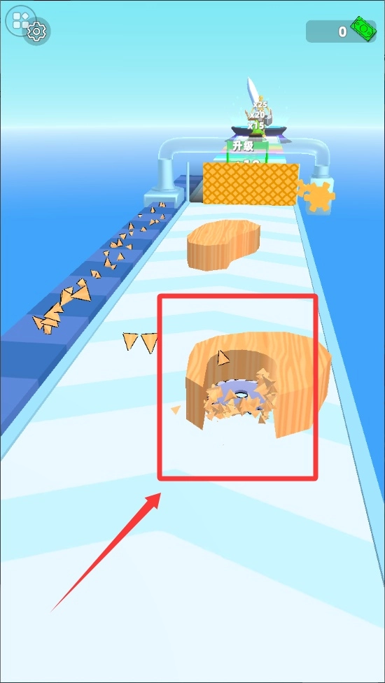 把当前区域的木材加工全部完成后,按照箭头的指示把研磨机移到终点标志的位置,路上得躲开障碍物。