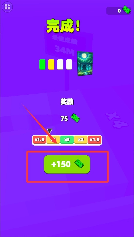 任务结束后会弹出结算页面,点击带有金色闪光效果的“+150金币”奖励按钮就能领取酬劳,积攒的金币可以用来解锁更高级的设备。