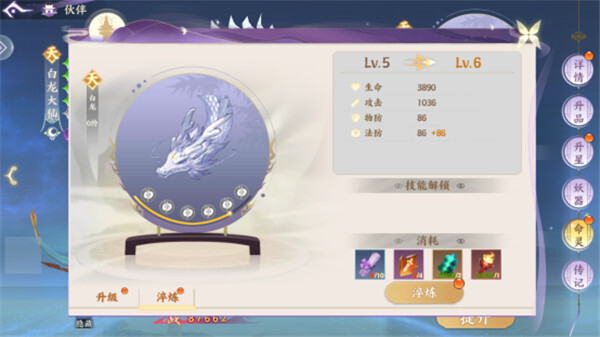 在伙伴的培养层面,除了具备独特国风韵味的“天、罡、地、煞”伙伴品阶分级称谓外,还有伙伴命灵与妖器这两大助力养成的关键系统!