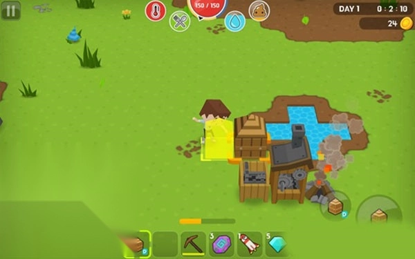首先得把武器做出来,这是最关键的一步。通过点击左右按钮能切换到武器制作界面,五个木头就能合成一把木剑,有了它夜晚碰到邪恶生物时就能保护自己了。除此之外,木斧和木镐也可以制作,这些都是前期必不可少的工具,有了它们不管是挖矿还是砍树效率都会更高。
