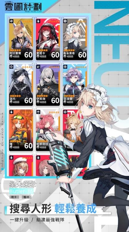 1、收集并培养人形角色,每个角色都具备独特的技能与属性,支持一键升级、无损调整阵容,可自由搭配组建专属战队。