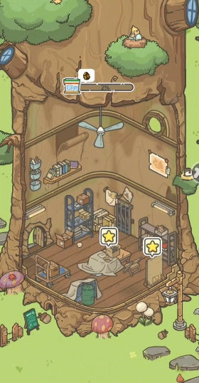 3.使用足够的金币解锁家具,装点你的树屋,打造独具个性的庄园。