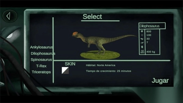 2. 点击play后可以选择不同的恐龙,共有五种不同的恐龙可供挑选。