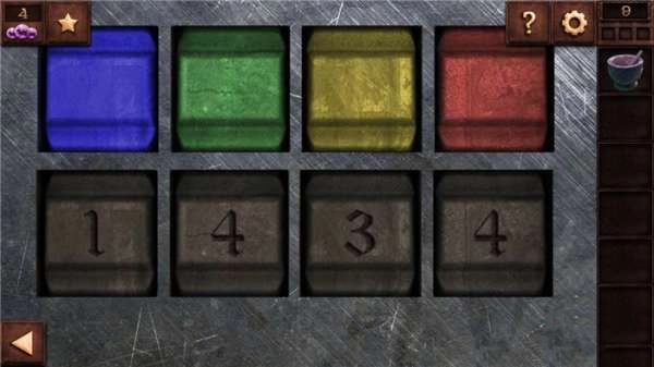 回到房间后,我们注意到右侧有个被布盖着的物件,掀开布一看,原来是个鸟笼。密码锁的规律和之前那个一致,输入1435后,取下里面的羽毛和钥匙。
