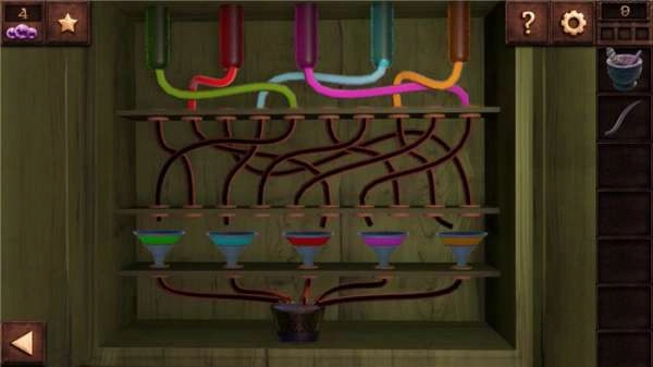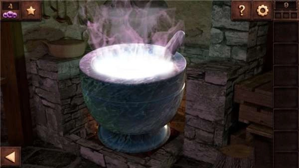 将羽毛放进杵臼里,接着把杵臼、角和药剂一同放入大锅中,之后点击大锅服用,便发觉自己变小了。这时看到一个洞口,直接点击洞口钻进去,就能完成第九关。