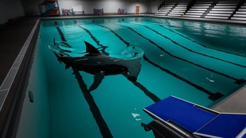 你被困在一个闹鬼的鲨鱼游泳中心,只有游满10圈才有机会逃脱;游泳过程中耐力会不断消耗,要是中途放弃,就会遭到鲨鱼的致命袭击。