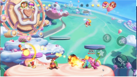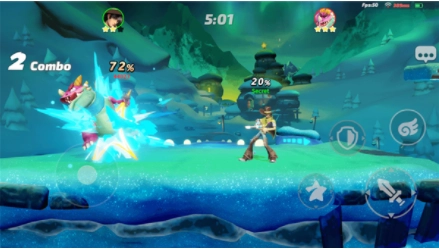 派对之星国际服属于格斗类游戏,玩家能操控自己的角色在平台上与对手展开攻击对抗。该游戏里角色没有生命值设定,获胜的关键在于把对手打出格斗平台,只要对方没办法回到平台,己方就能赢得胜利。游戏中设有击飞值,两名玩家互相攻击时,头上会显示出击飞值,被攻击的次数越多,击飞值就会越高,那么下一次受到攻击时就会飞得更远,这样就能更轻松地将对手击飞出平台。总的来说,游戏核心的格斗策略就是把敌人打出场外以及自身如何回场,部分特殊技能可以帮助玩家飞回平台继续战斗。这款游戏的玩法比较简单,新玩家进入训练模式体验一次,就能掌握角色战斗的操作方法。