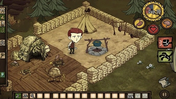 3、收集材料时需格外留意角色的饥饿程度,右上角会有相关显示;若饥饿值快降至零,要及时补充,否则可能需要重新开始游戏。