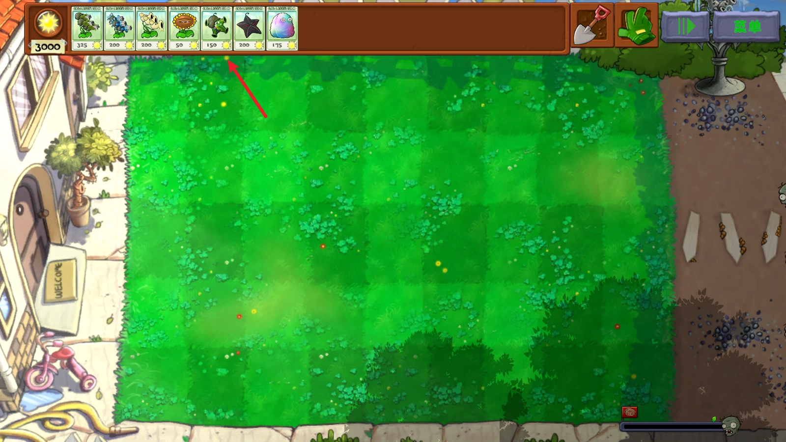 1、进入游戏后没有原版的选卡环节,直接开始闯关。