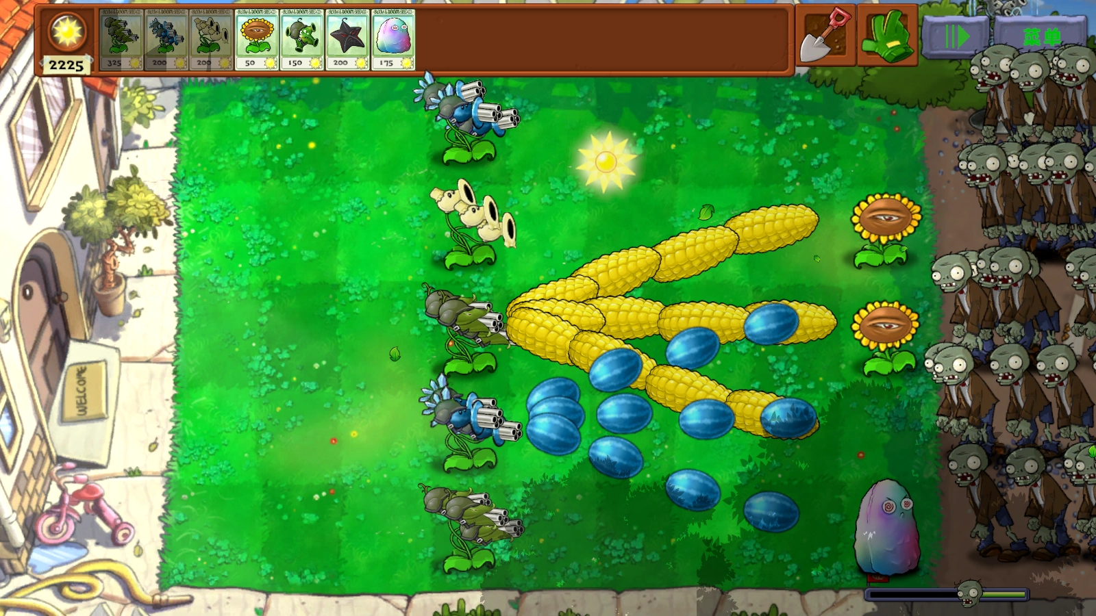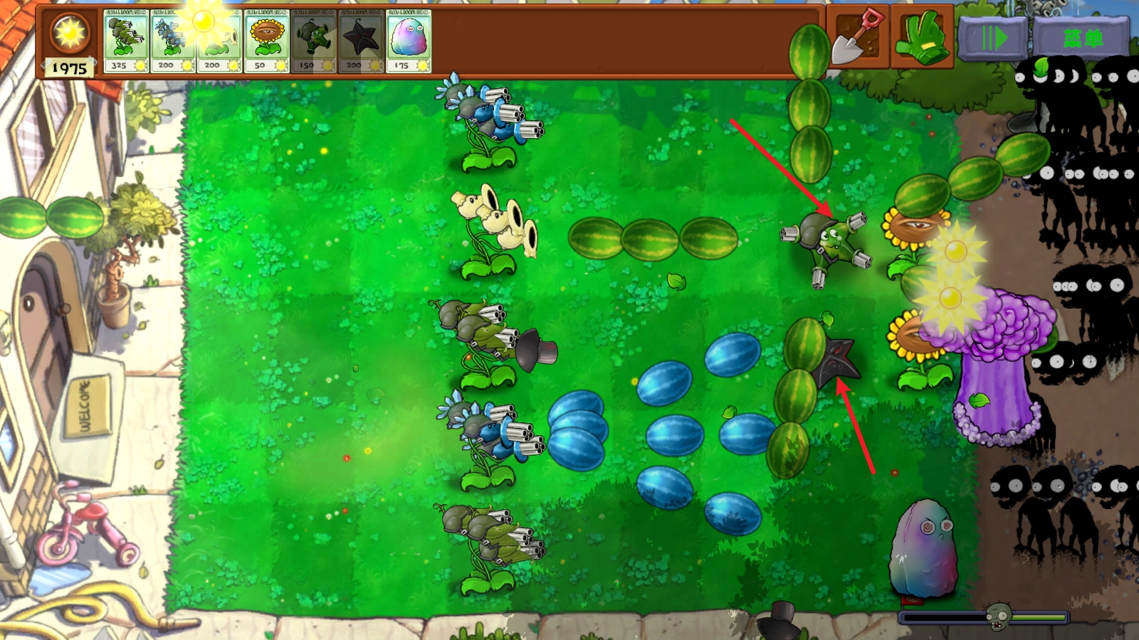 4、能发射玉米加农炮的机枪射手,以及能发射冰冻西瓜的机枪射手。