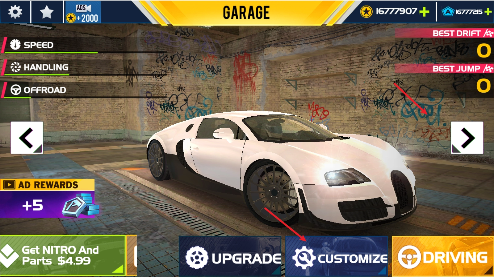 2、你可以自由定制自己的爱车,对汽车进行全方位改装,无论是车身喷漆、轮毂颜色,还是车窗、LED灯,每一处细节都能随心定制。