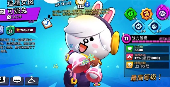 5、妮塔,她的普通攻击手感流畅,命中难度低,并且在极限充能状态下扔出的熊熊能造成高额伤害,在掩体和草丛较多的地图里表现十分出色。