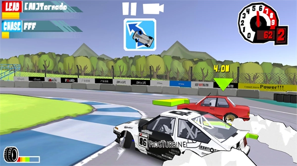 4、操作上,右半屏幕负责控制油门,左下区域是刹车,左上方为手刹功能,可用来触发漂移动作