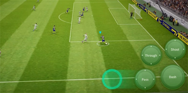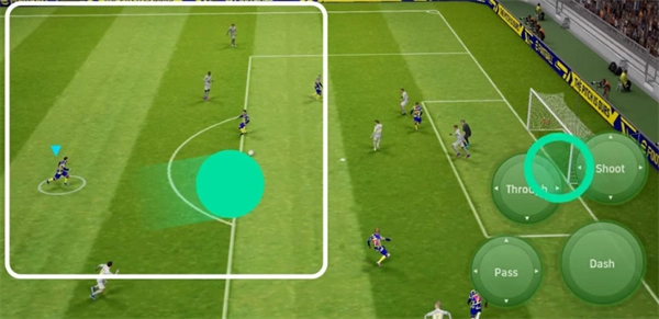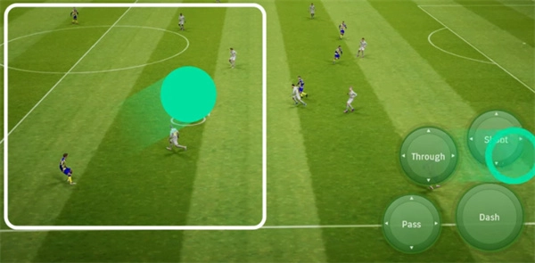完成传球动作后,在画面左侧向己方球门方向拉回,接着朝着对方球门滑触。