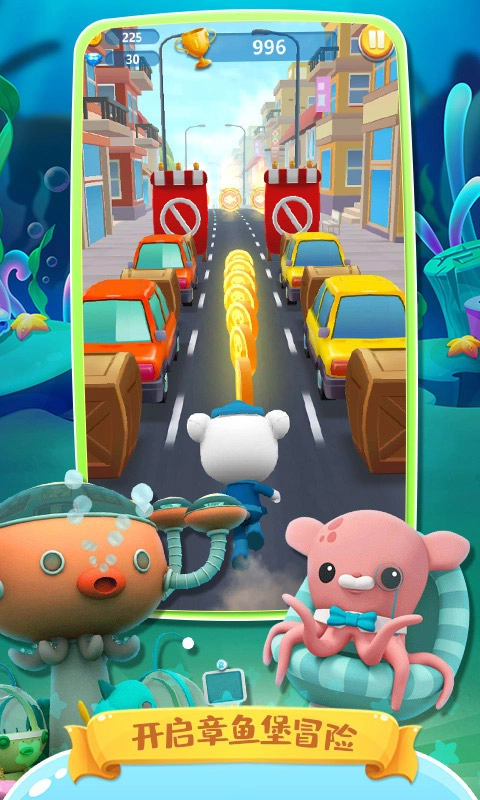 海底小纵队快乐酷跑是一款全新推出的卡通风格跑酷游戏,它高度还原了经典动画《海底小纵队》里的角色与场景,采用竖版操作模式,让玩家在海底世界开启一场紧张刺激的冒险之旅。在游戏中,玩家会化身为可爱的小队员,在神秘的海底穿梭奔跑,挑战章鱼堡等高难度地图,收集金币和宝藏,还能切换不同角色,尽情享受沿途的风景与趣味玩法。