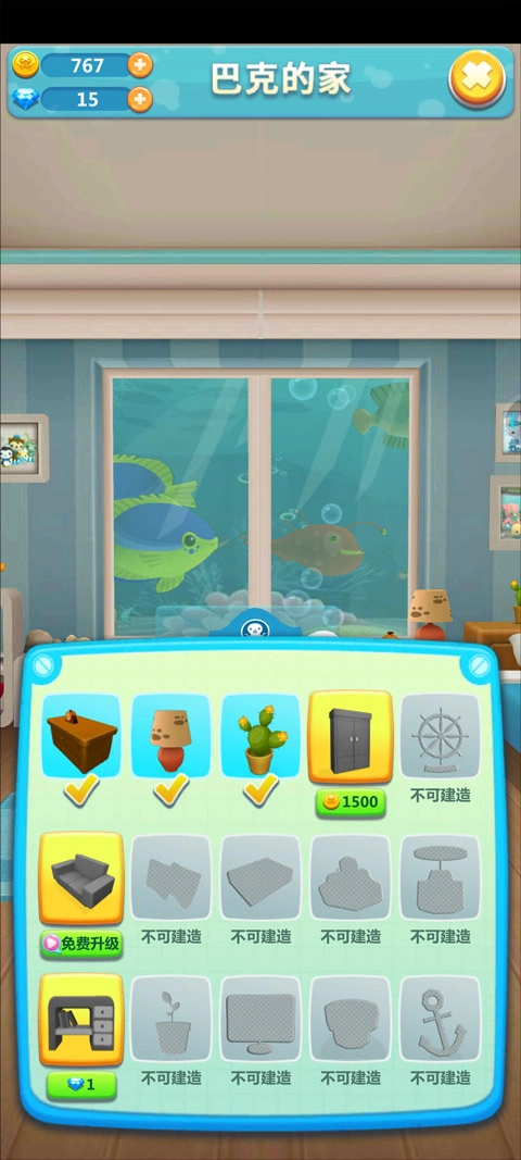 5、点击建造功能,可对海底基地进行布置,每完成一幢建筑,都能获得分数加成。