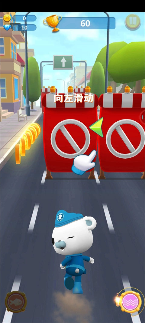 3、留意屏幕上的障碍物,通过左右滑动来调整移动方向,上下滑动则可以完成跳跃动作。