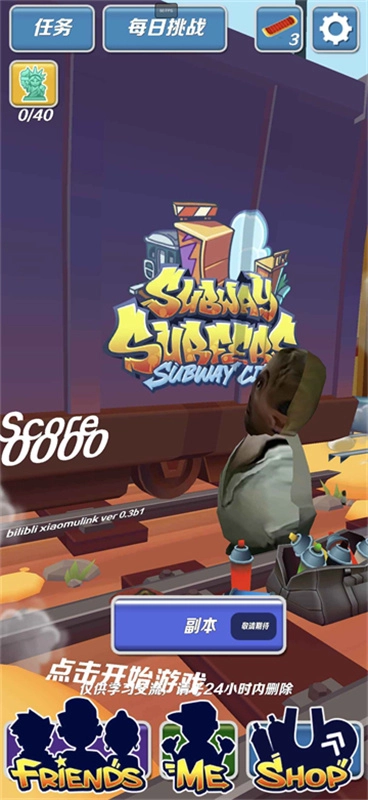 1、启动哈基蜂跑酷游戏,进入B站UP主“xiaomulink”自制的魔改版地铁跑酷,点击屏幕即可开始游戏。