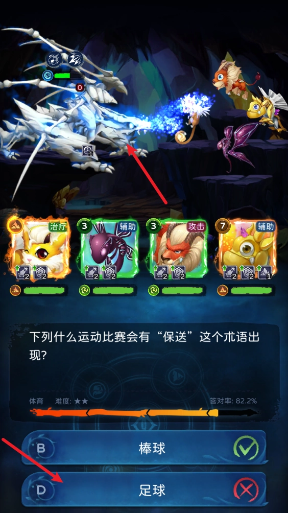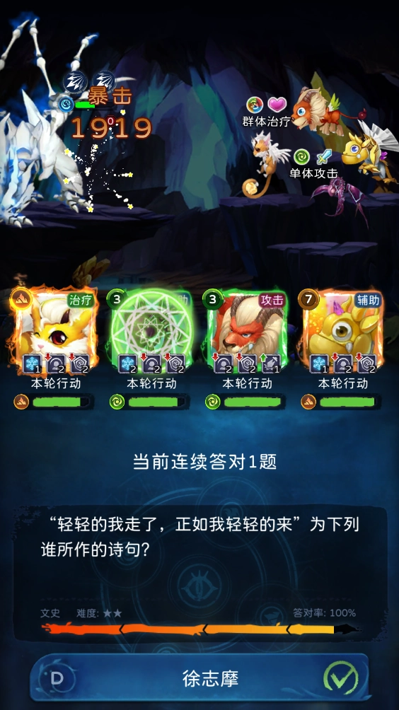 进入战斗后,我们要挑选对应属性的题目,以此来操控宠物开展战斗。