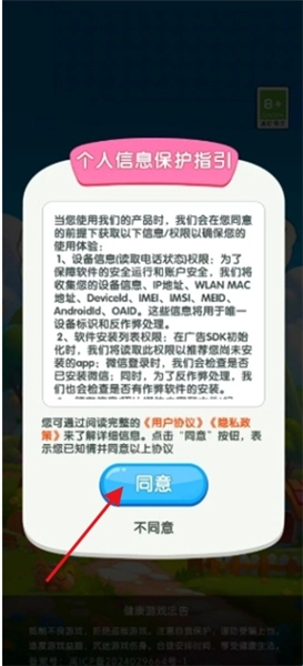 1、第一步进入安装好的游戏,点击同意相关的权限