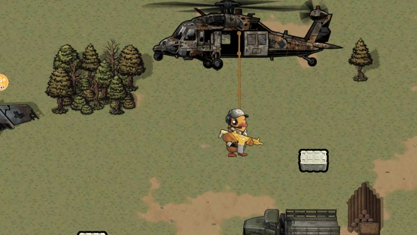 1、开启游戏后,乘坐直升机被投送到指定战场区域,落地后迅速熟悉周边地形。