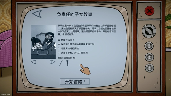 3、【负责任的子女教育】、固定天数类,且是其中最难的一个。玩法重点、探险人数被限制 要保住儿女 防守保卫被削弱 罐头需求激增!