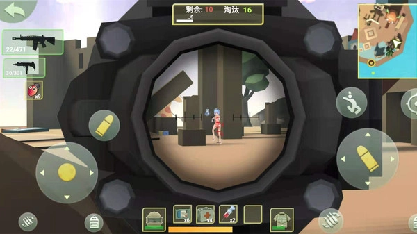 这款射击游戏主打脑洞大开的玩法设计,沿用了生存竞技的核心模式,但在机制和细节上做了不少创新调整。玩家能体验到更具冲击力的对战过程,在危机四伏的环境里挣扎求生,还能从地图各处搜集到不同类型的武器资源。