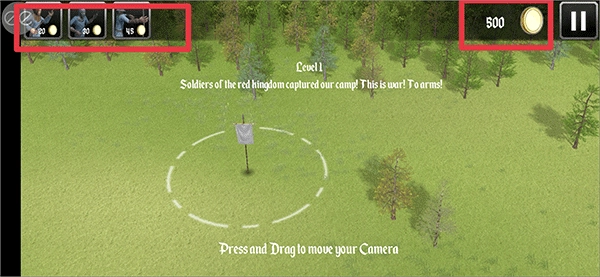 进入游戏界面后,屏幕右上角会显示初始可用的金币数额。在金币数量有限的情况下,你需要先点击左上角的士兵头像来部署第一批作战单位。