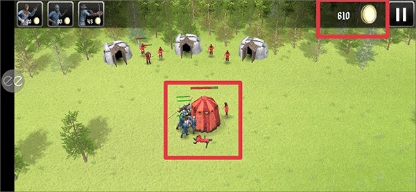 在对抗敌方单位或攻克其防御阵地的过程中,界面右上角的货币数值会持续累积,玩家可利用这些积累的货币招募更多作战单位。