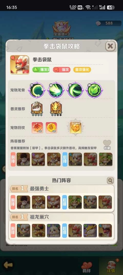 土系阵容的最强搭配思路是:把拳击袋鼠作为核心角色,借助香蕉猩猩施加的【裂甲】效果,让拳击袋鼠能多次打出额外普通攻击,从而高频率地触发裂甲效果。