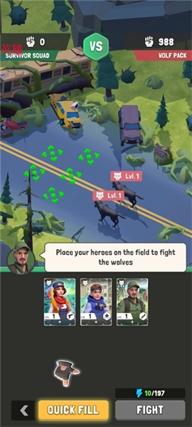 7.当遭遇野兽时,请把您的英雄部署在战场的绿色安全区域内,并搭配合理的阵容来对抗狼群这类威胁。