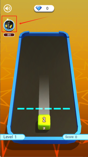 2、操控黄色数字方块“2”在滑道上移动,瞄准上方蓝色虚线区域射击,尝试合并相同数字。