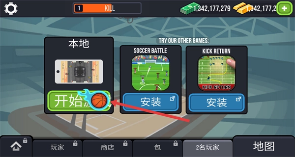 在模式选择界面,点击本地模式即可开启双人对打功能。