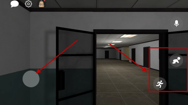 5、进入游戏2后,左侧摇杆可控制角色移动,右侧两个按键中,上方的用于蹲下,下方的则是奔跑按键。