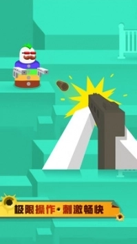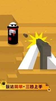 1、游戏中,角色需用持续晃动的枪口瞄准敌人并射击,命中即可击倒敌人,若未命中则游戏失败;成功击倒敌人后,角色就能向上跳跃一阶。