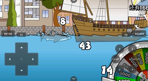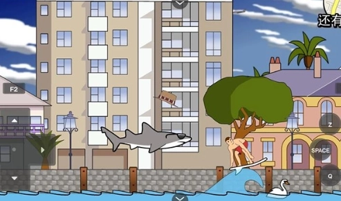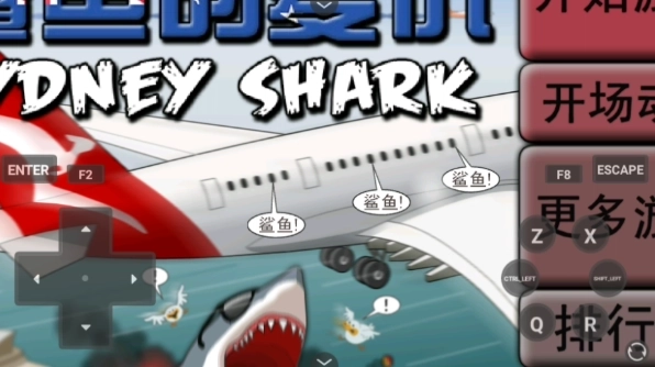 2、首先来熟悉一下基础的操控方式:左侧的方向键能够控制鲨鱼的移动,当你操控它向下游动后,再突然向上,就能让它游得更快。