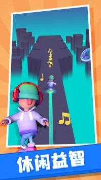 1.玩家只需跟着音乐的节奏,持续向前冲刺即可完成任务。