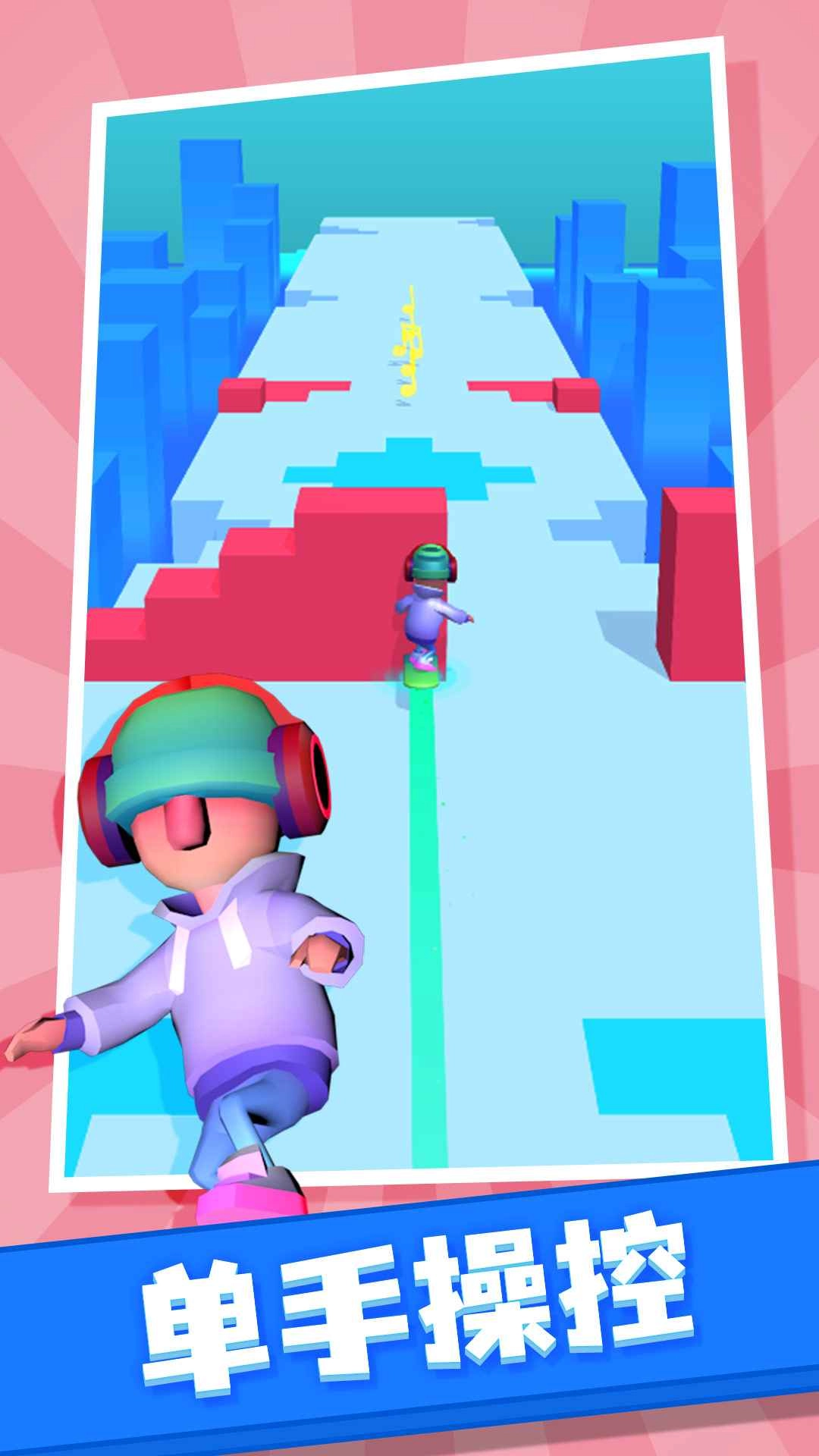在蜿蜒曲折的道路上,玩家操控不同角色闯过重重关卡。这款以滑板为核心的游戏里,收集沿途金币与道具是关键——它们能助力玩家更顺利地通关,进而挑战难度更高的关卡,收获满满的成就感。